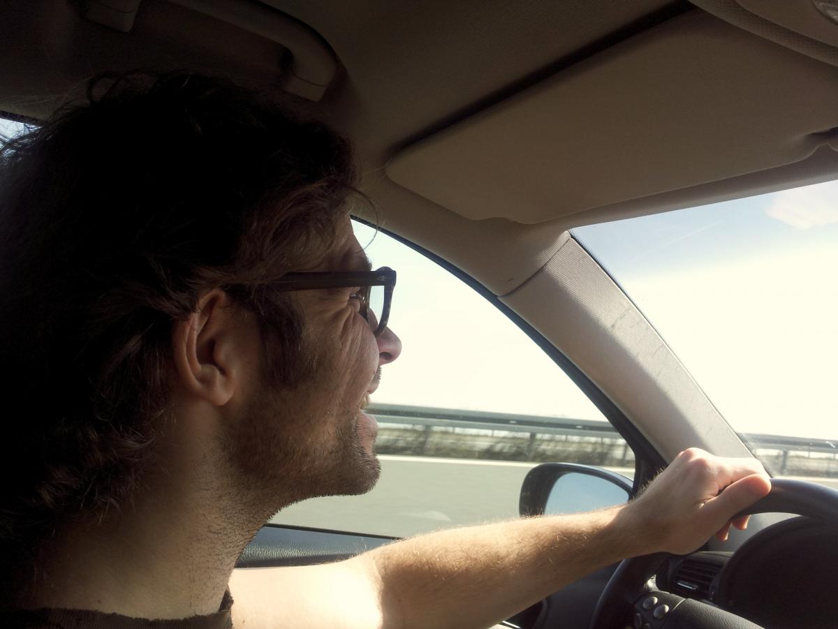Solange wir noch in Deutschland sind, wollen wir noch ein paar Dinge machen, die man nur hier tun kann: Zum Beispiel mit 200km/h die Autobahn unsicher machen. Als US-Amerikaner weiß John das sehr zu schätzen.