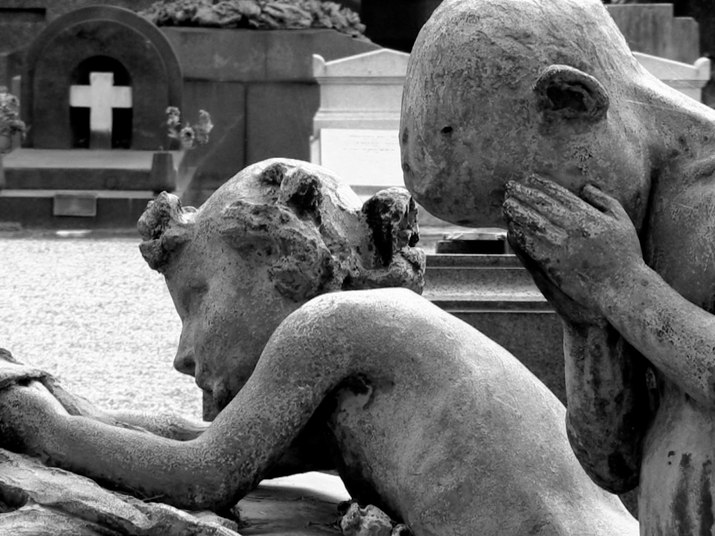 Wir gingen dorthin um die Skulpturen zu finden, die sie damals so erschreckt hatten. Wir sahen viele trauernde Familiengruppen, verwaiste Kinder und klagende Frauen. Aber die Frau, die sich am tiefsten in Elisas Gedächtnis eingeprägt hatte – eine Mutter mit ausgestreckten Armen, der der Tod das Kind entreißt – fanden wir nicht.