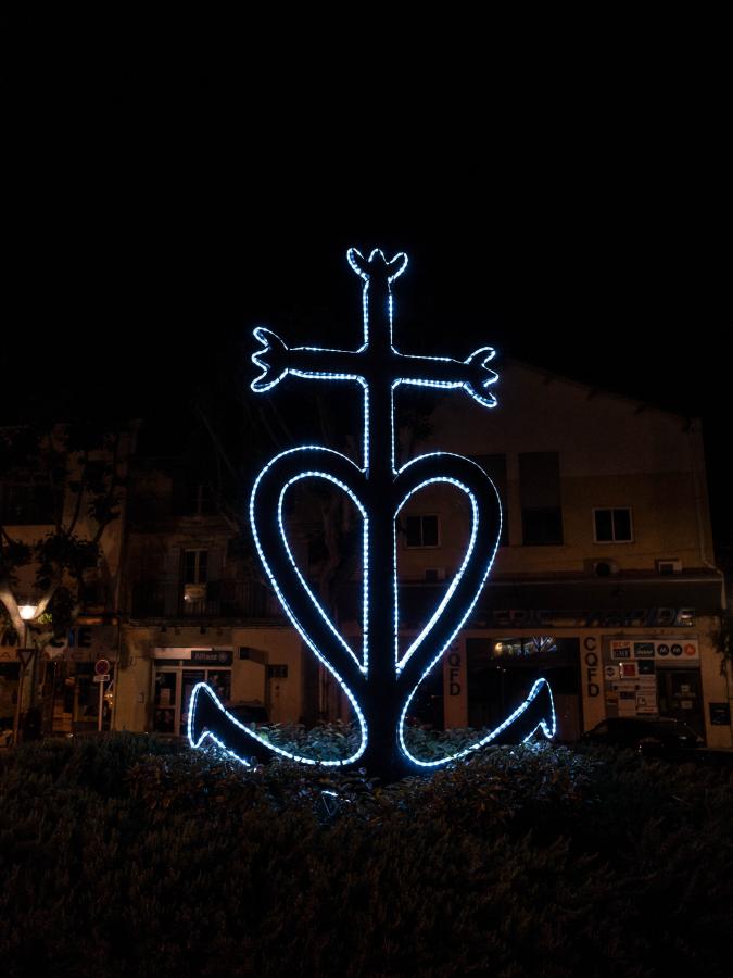 La Croix de Camargue ist überall in der Region zu sehen. Es symbolisiert die Tugenden Glaube, Liebe und Hoffnung.