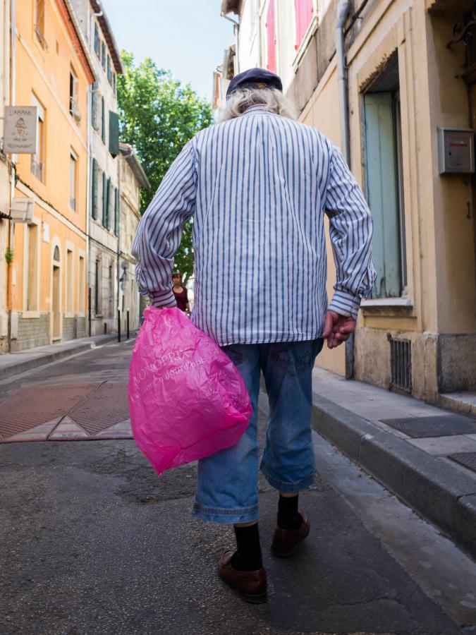 Die pinke Tüte dieses Mannes fesselte uns derart, das wir ihm eine gute viertel Stunde durch Arles folgten.