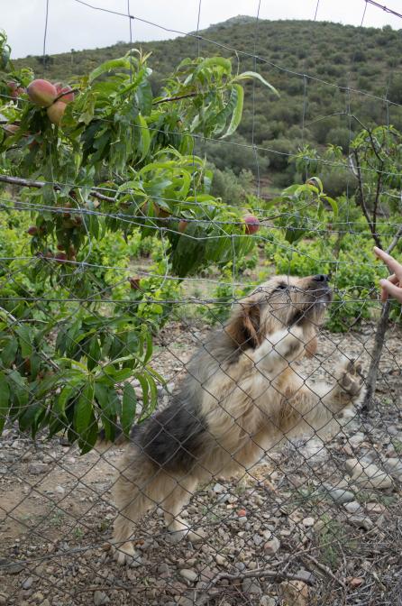 An einem Pfirsichbaumgarten angekommen versuchte Elisa ein Paar der süßen Früchte zu stehlen. Doch der Wächter des kleinen Paradieses verlangte zuerst eine Streicheleinheit.