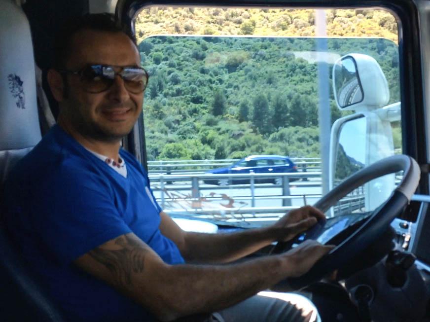 Der LKW-Fahrer Giuseppe bestand auf eine für uns neue Kommunikationsweise: auf seinem Smartphone tippte er italienische Sätze ein und ließ sie ins Englische übersetzen. „Here, you like to have some of these drinks or snacks?“ Von einem Fach über unseren Köpfen zauberte er eine riesige Tüte hervor, die neben Familienpackungen von Schokoriegeln auch den ganzen Haribo-Katalog zu beinhalten schien.