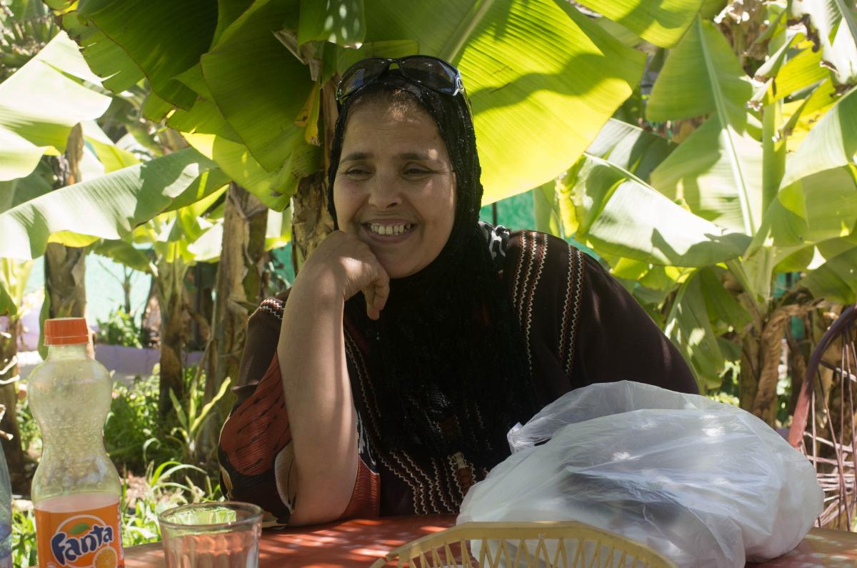 Fouzia ist 46 Jahre alt und zum ersten Mal verheiratet. Bisher lebte sie zusammen mit ihren Schwestern und deren Kindern. Obwohl sie eine großartige Köchin ist, genießt sie auch die Tajine in ihrem Lieblingsrestaurant inmitten einer Bananenplantage.