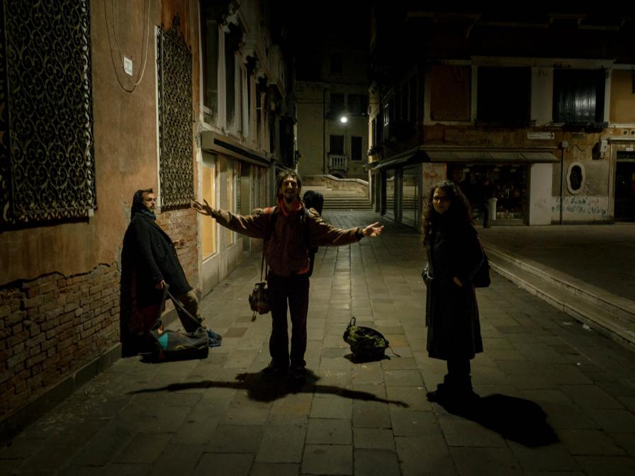Chiara, Filippo und Aronne. Seit 6 Jahren hat Claudius sie nicht mehr gesehen! Das Foto fasst wunderbar zusammen, wie diese Nacht in Venedig war.