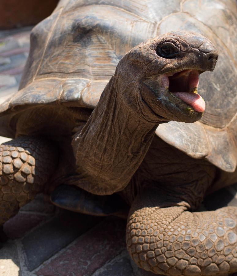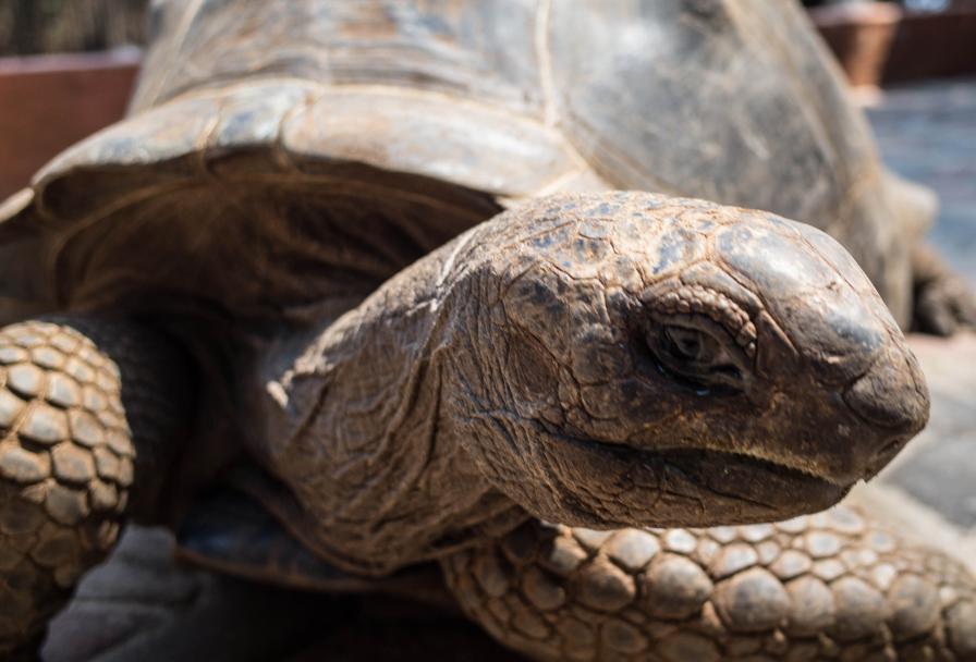 Diese Aldabra-Riesenschildkröten sind in Sansibar nicht endemisch. Die auf Changuu lebende Gruppe stammt von dem Aldabra-Atoll in den benachbarten Seychellen. Sie sind an Besucher gewohnt und lassen sich auch gern von ihnen die ledrige Haut streicheln.