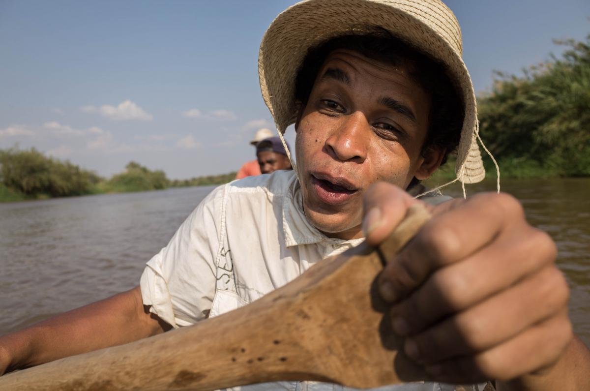 Drei Tage und zwei Nächte fuhren wir im Einbaum („pirogue“) von Miandrivazo nach Antsiraraka. Unser Pirogier Simon und sein Assistent Jean Chryostome waren nicht nur für das Boot sondern auch für die exzellente Küche zuständig. Mittags und abends wurde unterwegs in der Pirogue gekocht!
