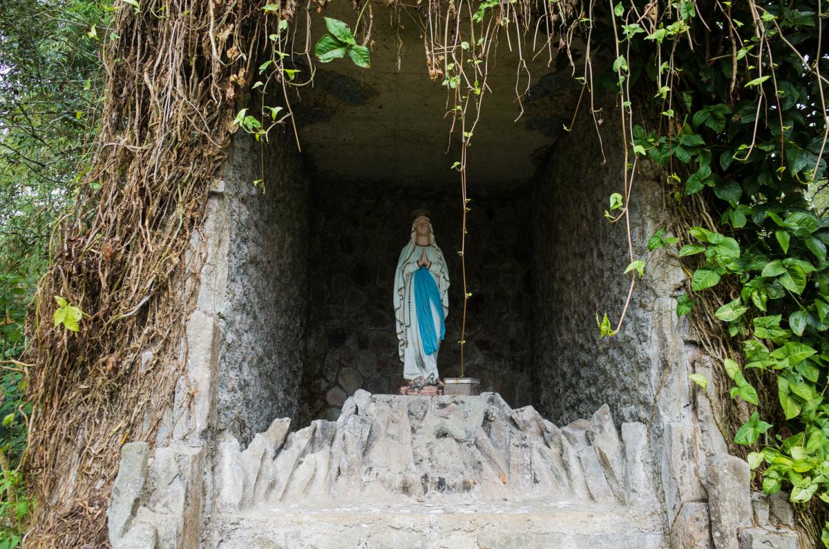 Der Katholizismus wurde im 16. Jahrhundert von den Portugiesen nach Indonesien gebracht. Die Gua Maria wurde errichtet, als ein junger Mann im Dschungel eine Vision der Heiligen Maria hatte. Allerdings sind der traditionelle Glaube und der Animismus hier nicht ausgestorben. In Buu Bei und anderen traditionellen Dörfern wird zum Beispiel noch der Ahnenkult praktiziert.