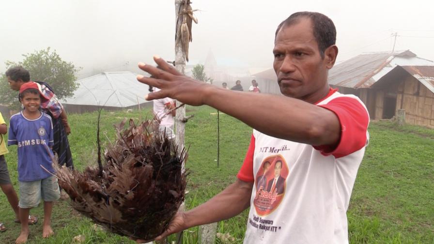 Clemens ist einer der Bewohner Buu Beis. Er zeigte uns eine Kugel aus Zweigen und Blättern, die für traditionelle Zeremonien verwendet wird. Die Kugel ist ein Symbol für die Seelen der Verstorbenen. An diesem Ort treffen sie zusammen und können so symbolisch an den Ritualen ihrer Familien teilnehmen.