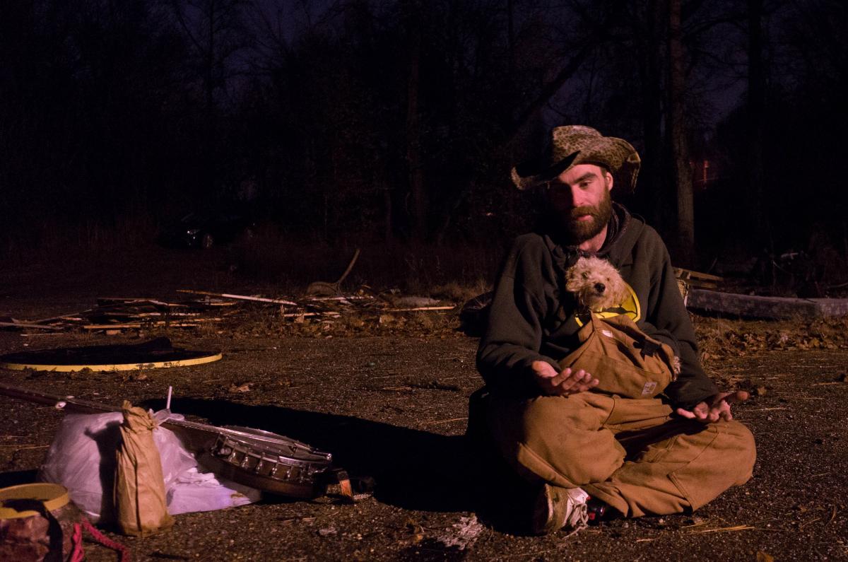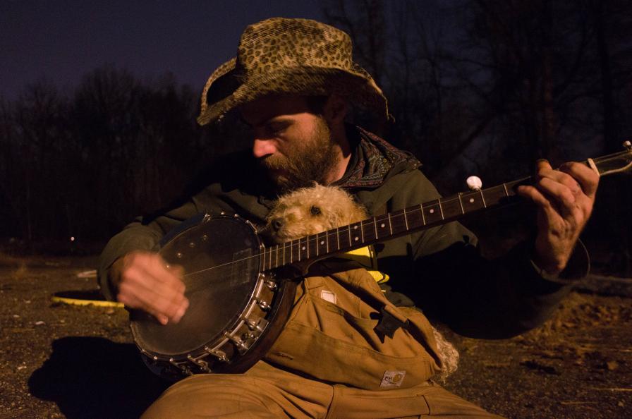 Mitten in Downtown Memphis liefen uns Foots und Jed über den Weg. Foots' Hund Poodle lag wie ein Pelz um seinen Hals und an Jeds Rucksack baumelte ein Banjo – für uns Grund genug, sie einfach anzusprechen.