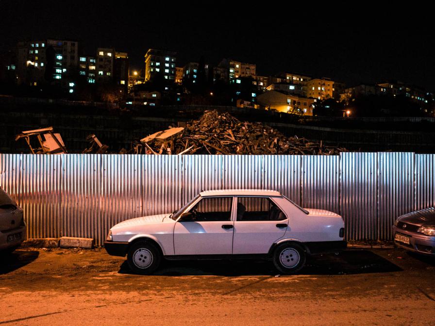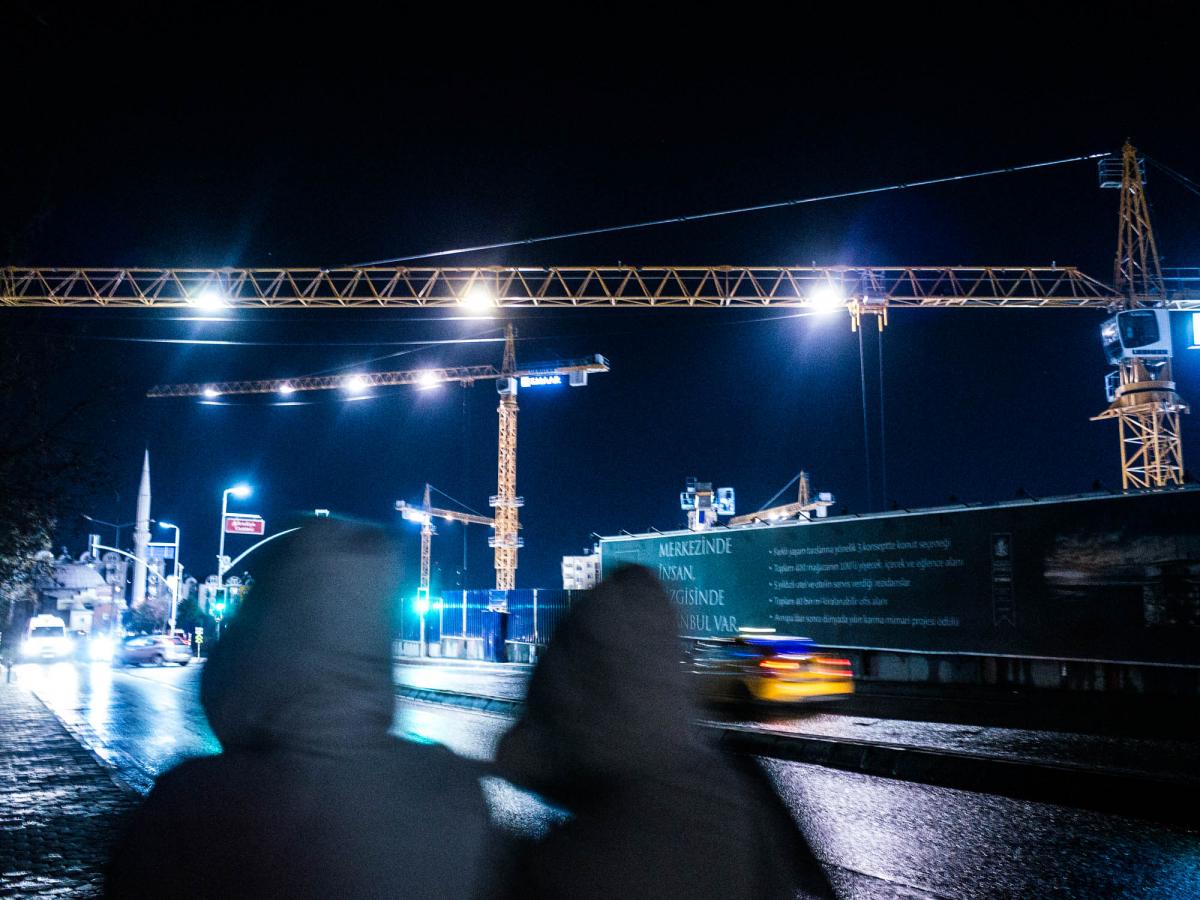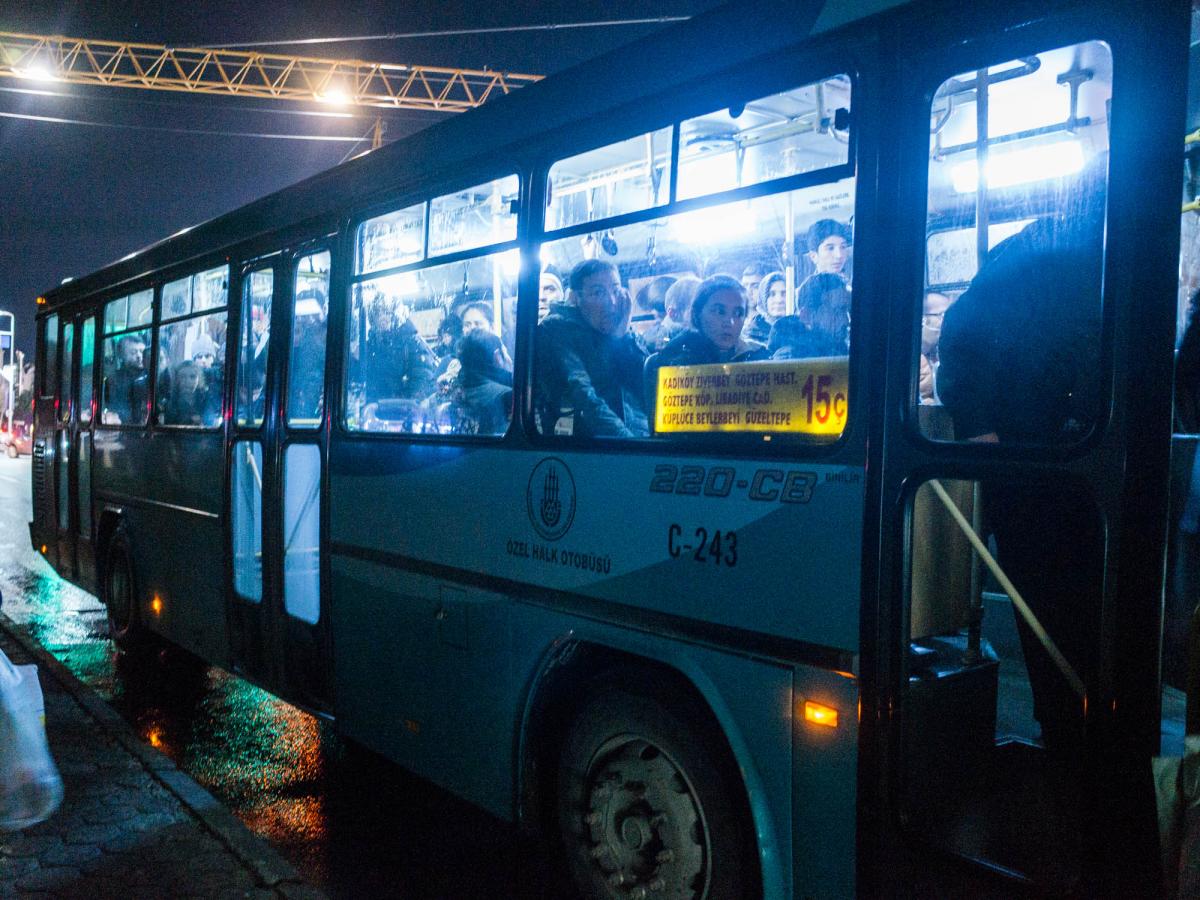 Istanbul im Dunkeln. Nieselregen, später Schnee. Wenn der Berufsverkehr anfängt, kann ein Weg, für den man sonst 20 Minuten braucht, zu einer Fahrt von zwei Stunden werden.Orte, Unorte, Baustellen, vierspurige Straßen, Brücken, Bushaltestellen im Nirgendwo.