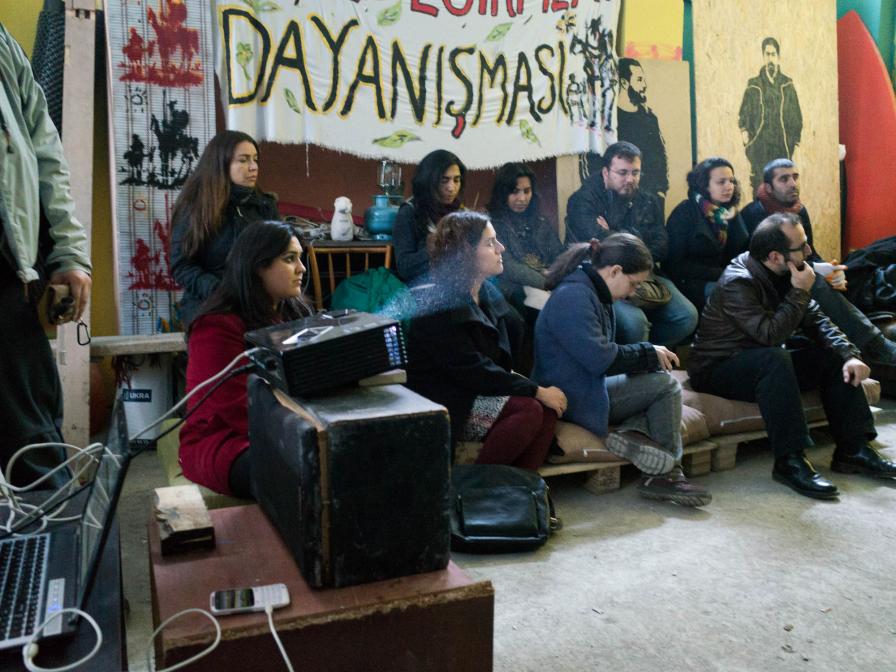 Das erste besetzte Haus in der Türkei. Ein Rohbau, ziemlich klein und voll mit Menschen verschiedensten Alters.